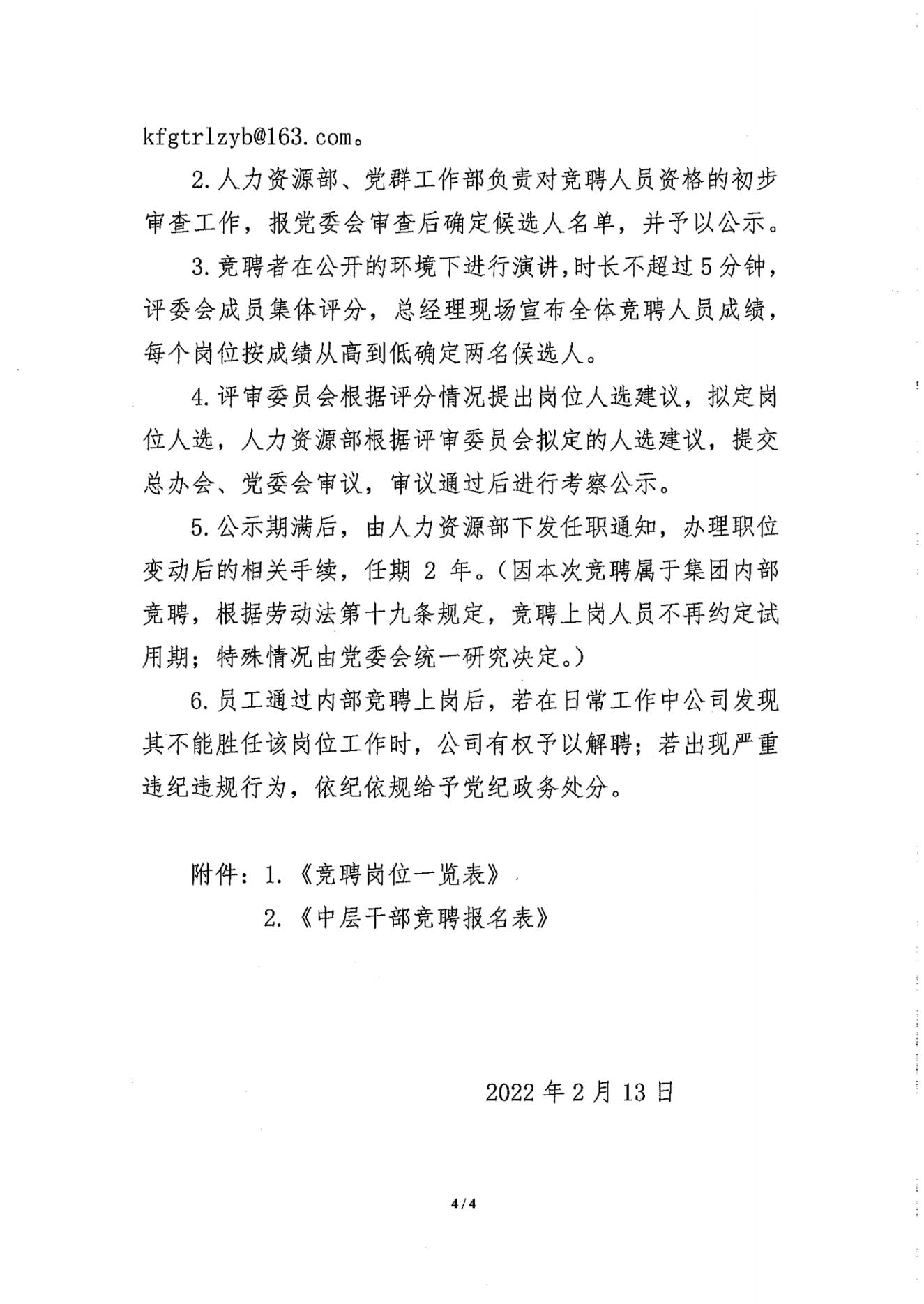 關(guān)于下發(fā)《開封國有資產(chǎn)投資經(jīng)營集團有限公司中層干部內(nèi)部競聘方案的通知》