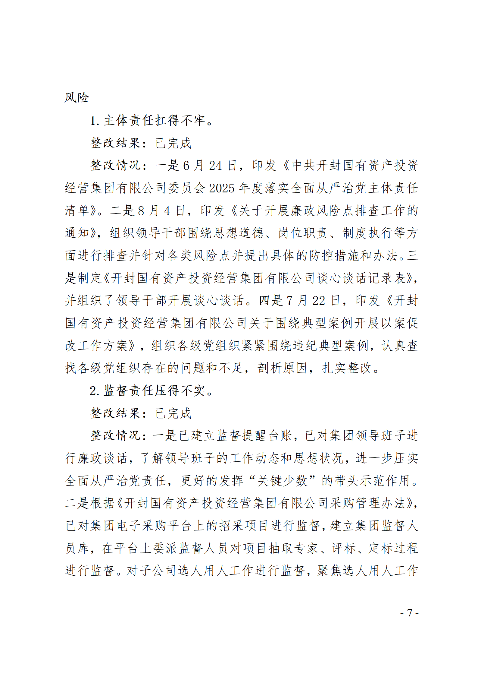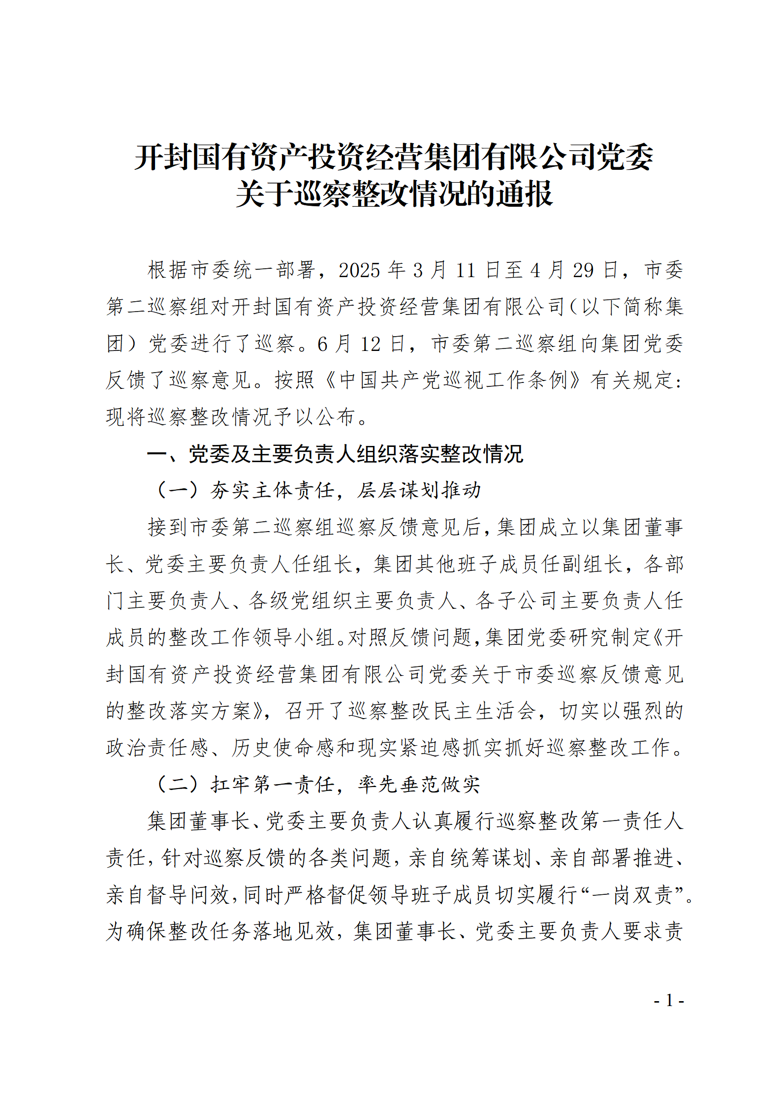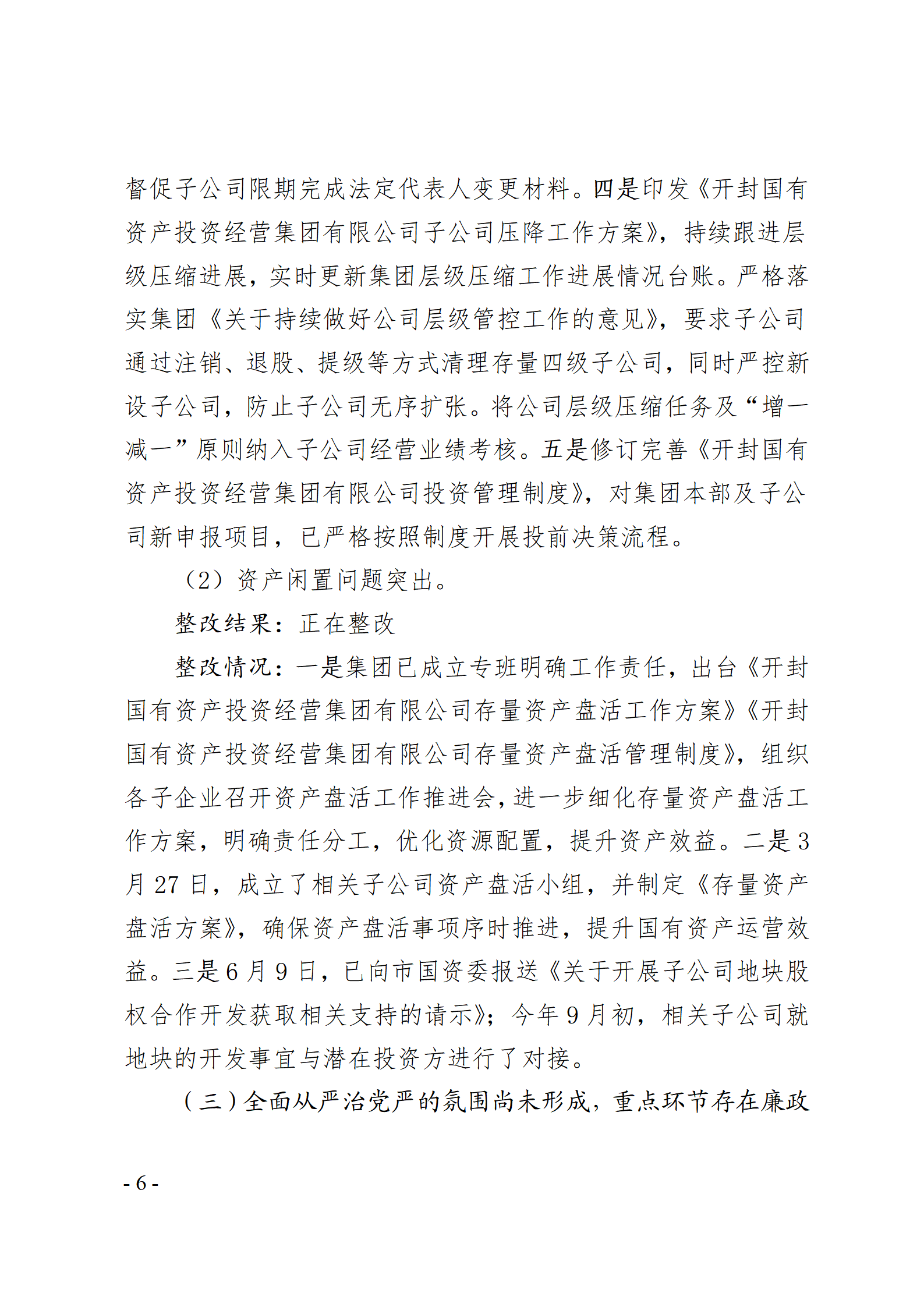 開(kāi)封國(guó)有資產(chǎn)投資經(jīng)營(yíng)集團(tuán)有限公司黨委關(guān)于巡察整改情況的通報(bào)